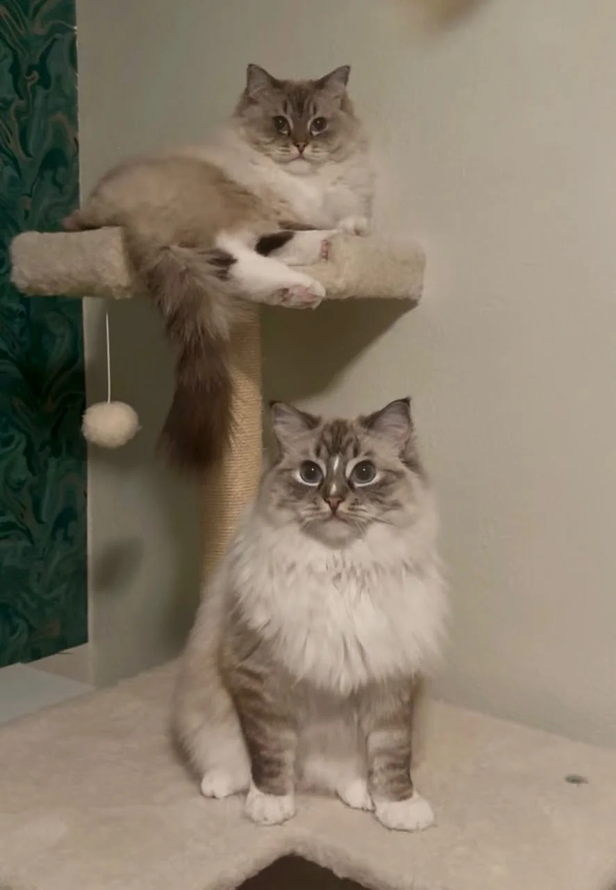 Raspberry - 3.5 yrs old (in 2025), snuggly and relaxed, enjoys being held and hang out in one place. Soft and fluffy! Lives with a calm dog.